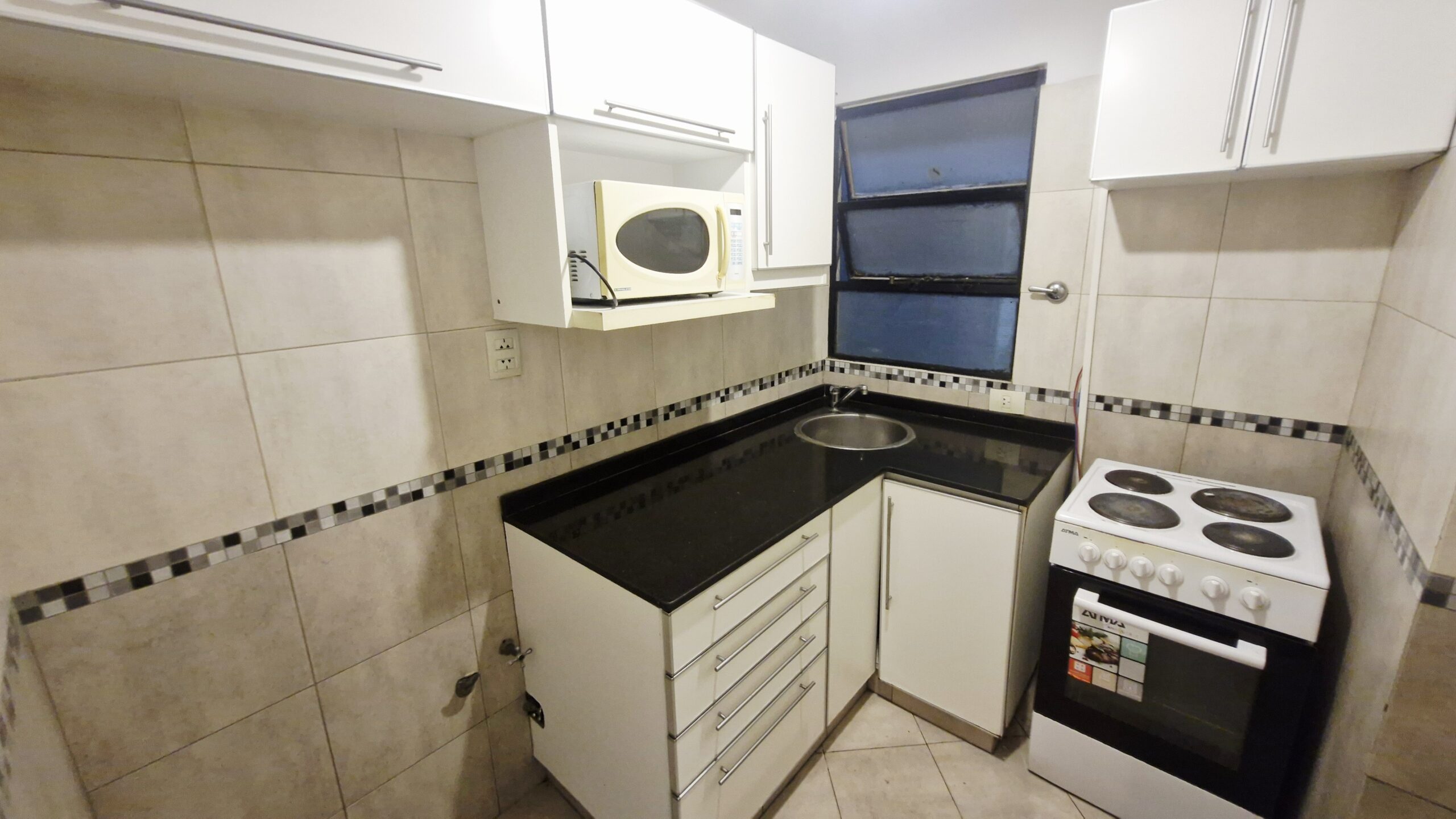 Cocina equipada completa con muebles bajo mesada y alacena.