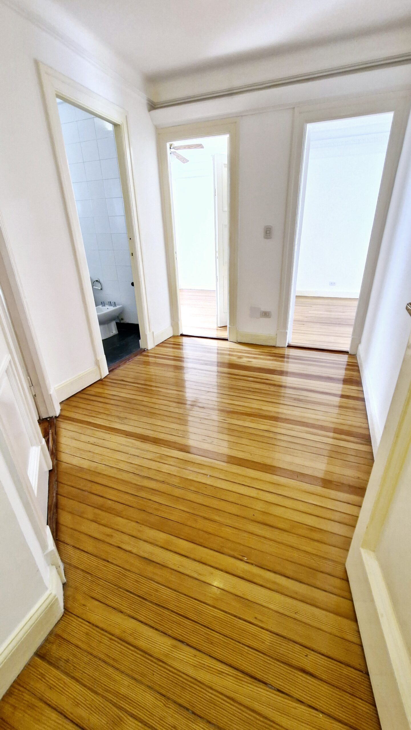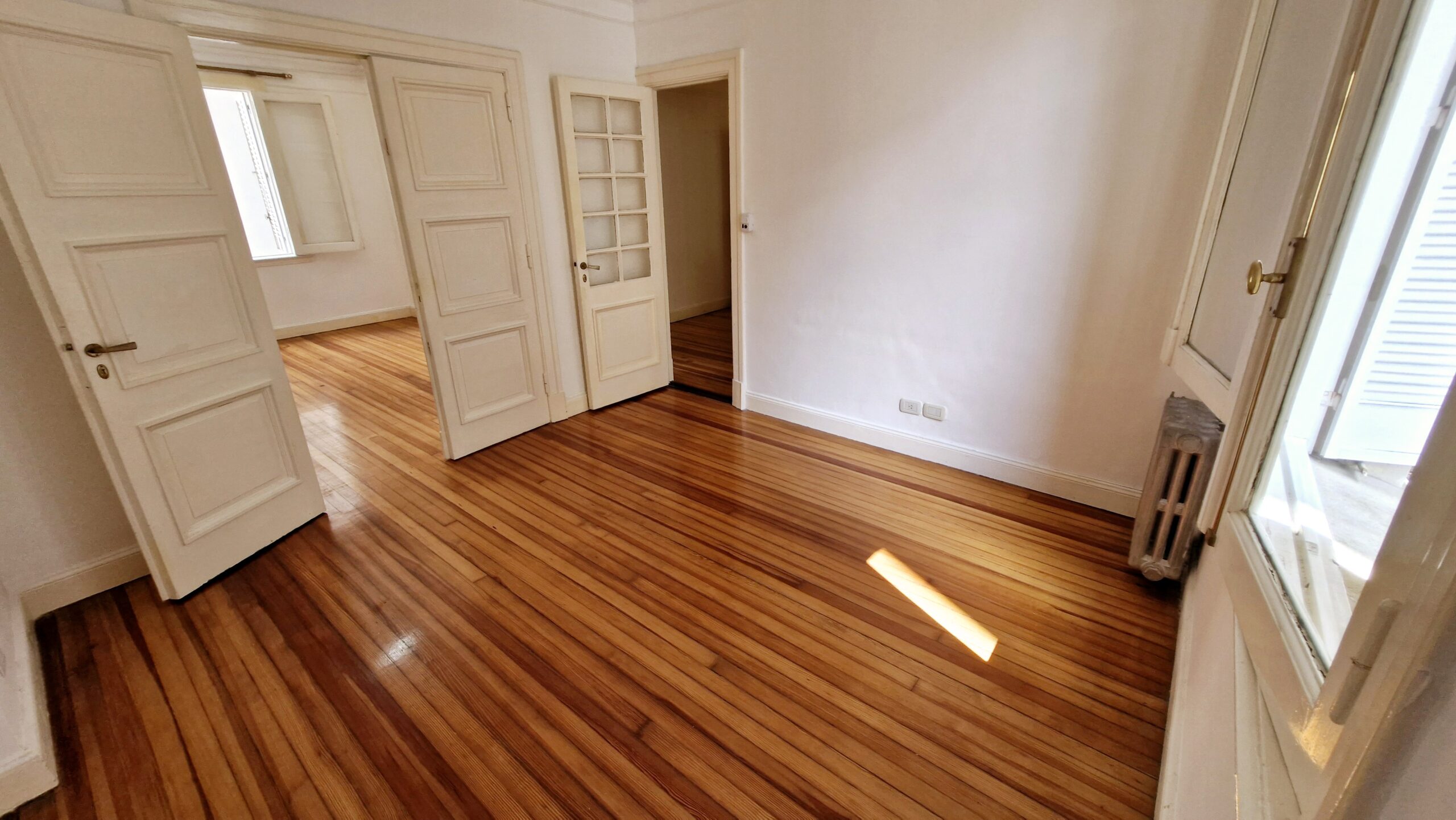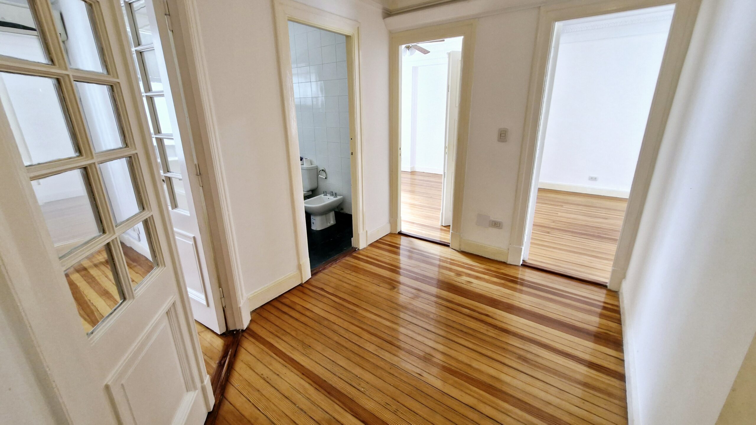 Todo el departamento tiene pisos de pinotea plastificados, se entrega recien pintado y esta en excelente estado. Apto crédito.
